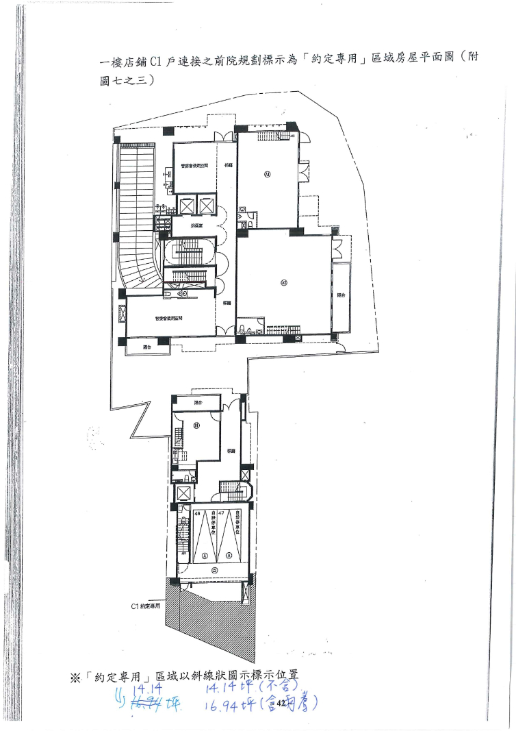 - 公共設施係指區分所有建物之全部或部分所有共用之建物面積,像是樓梯間、電梯間、屋頂突出物等。